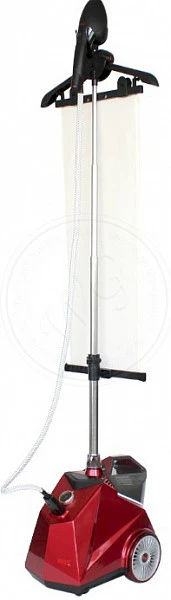 На стойку отпаривателя Mie Forza Red устанавливается регулируемая вешалка с держателем парового утюжка, удерживающим зажим и ткань для вертикального глажения.