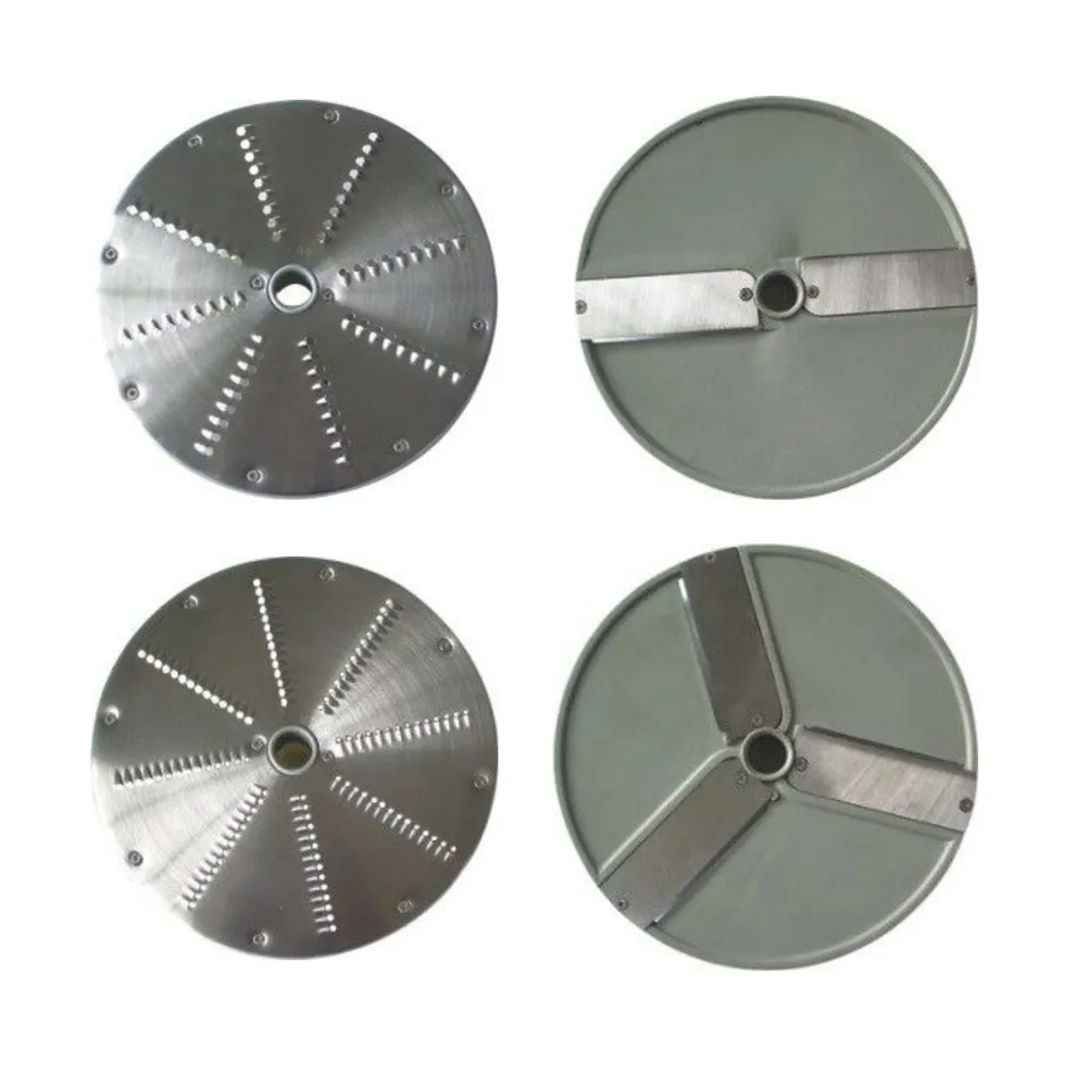 Сменные насадки — можно нарезать продукты ломтиками различной формы и размера. Возможна нарезка кубиками (специальный диск не идет в комплекте).