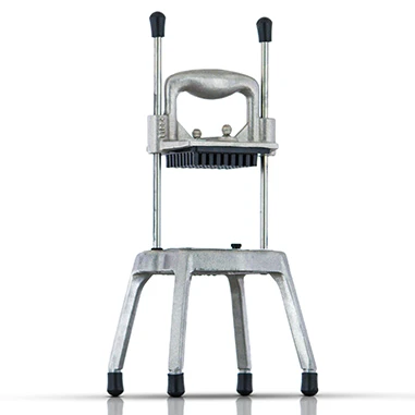 Нарезает кубиками лук, картофель фри и другие твердые овощи одним движением