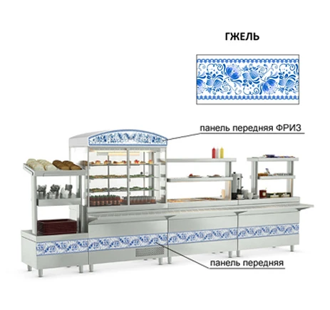Панель передняя Kayman Presto (950мм) - гжель носит декоративную функцию и позволяет создать привлекательный узнаваемый стиль линии раздачи питания.