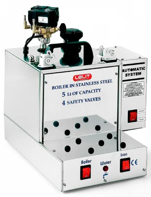 Профессиональный парогенератор, оборудованный разъемом ILME, позволяет при небольшом объёме бойлера использовать всё разнообразие сменных аксессуаров.