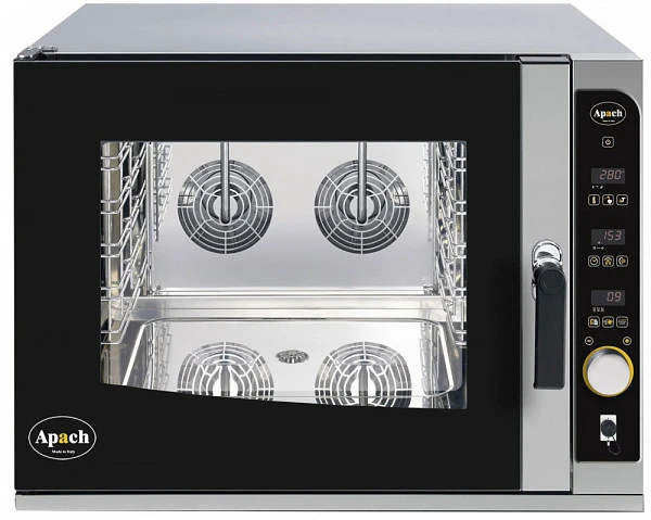 Пароконвектомат Apach AP5D с цифровым* управлением способен заменить несколько типов теплового оборудования и значительно ускоряить процесс приготовления блюд в кафе, столовых и отделах кулинарии в супермаркетах.