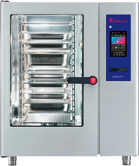 Пароконвектомат Eloma GENIUS MT 10-11 правые петли предназначен для приготовления широкого спектра блюд: мяса, рыбы, птицы, морепродуктов, овощей, гарниров и выпечки на предприятиях общественного питания и в производственных цехах, деятельность которых связана с выпуском гастрономических товаров. Модель оснащена электронной панелью управления с сенсорным экраном и таймером.