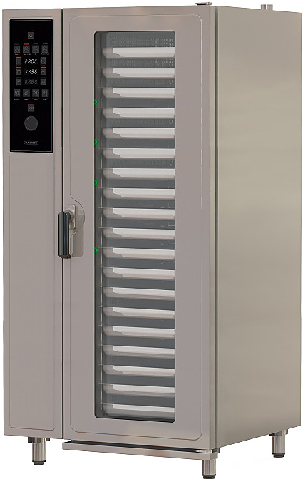 Пароконвектомат Gabino Combi-2011b Стандарт+ предназначен для обжаривания, приготовления на пару, бланширования, запекания и других видов тепловой обработки продуктов на предприятиях общественного питания и торговли. Вместимость - 1 тележка на 20GN1/1. В комплект поставки входит шпилька-тележка.