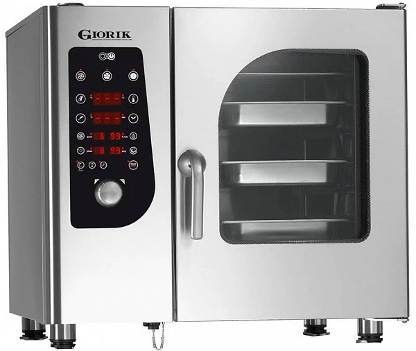 Пароконвектомат Giorik SBME061 используется на предприятиях общественного питания и торговли для приготовления широкого спектра блюд как на пару, так и при помощи сухого нагрева. С системой смешанного парообразования (бойлер+инжектор) и электронной программируемой панелью управления.