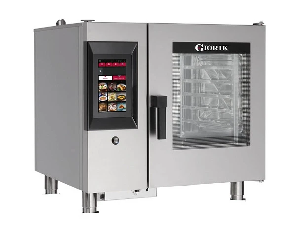 Пароконвектомат Giorik Steambox Evolution H SNHE061W предназначен для приготовления широкого ассортимента блюд на предприятиях общественного питания. С помощью подобного оборудования можно выпекать сдобные изделия, пироги, готовить сочные стейки, рыбу на пару и т.д.