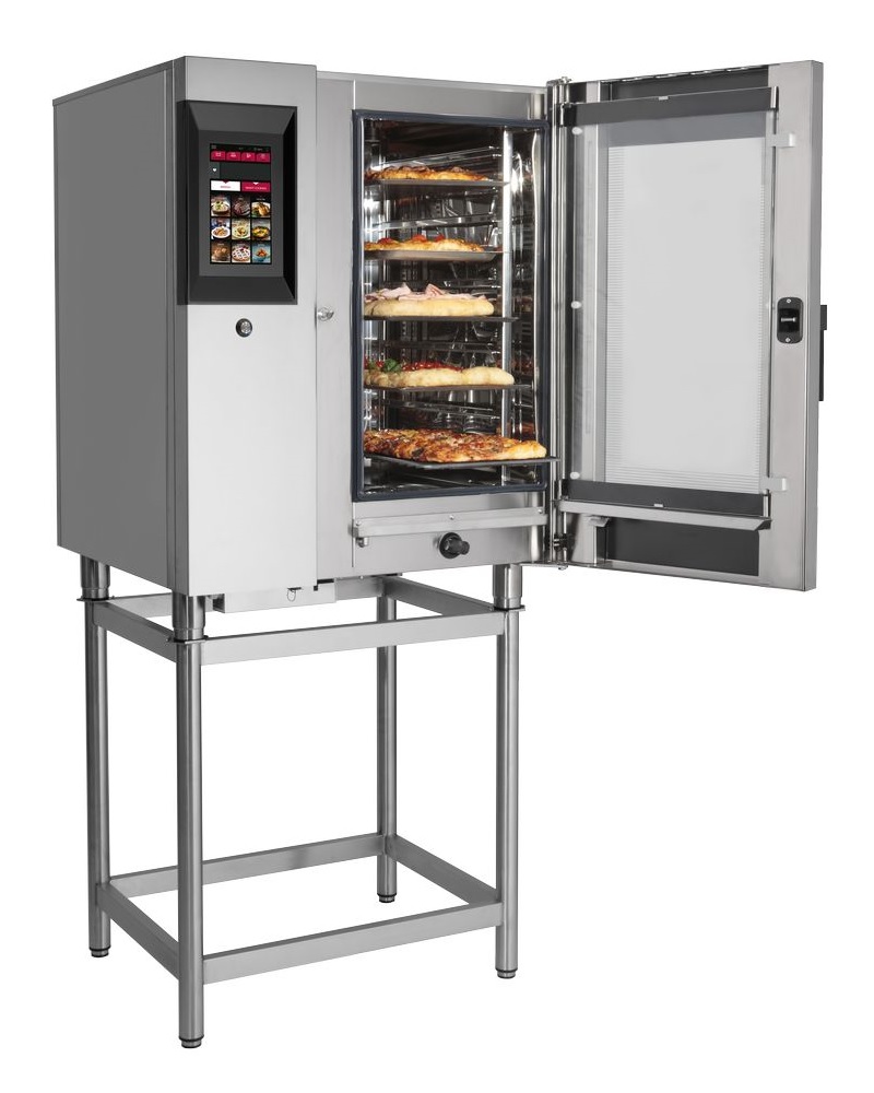 Пароконвектомат Giorik Steambox Evolution H SNHE101W предназначен для приготовления широкого ассортимента блюд на предприятиях общественного питания. С помощью подобного оборудования можно выпекать сдобные изделия, пироги, готовить сочные стейки, рыбу на пару и т.д.