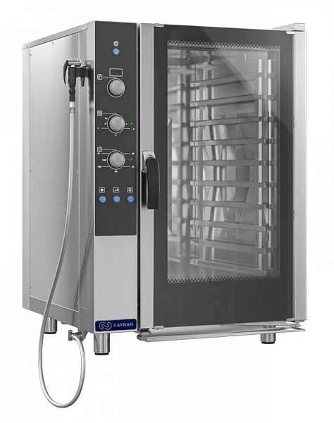 Пароконвектомат Kayman ПКЭ-10-И А используется на предприятиях общественного питания и торговли для приготовления широкого спектра блюд как на пару, так и при помощи сухого нагрева. Представляет собой универсальную печь, которая использует режимы сочетания пара и принудительной конвекции для приготовления пищи.