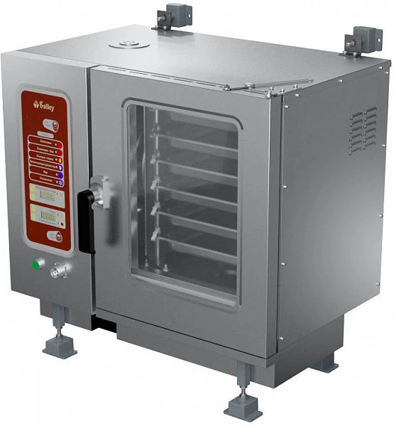 Проммаш ПКНС-6 судовой представляет собой вид теплового камбузного оборудования, который использует различные режимы сочетания пара и принудительной конвекции для приготовления большого ассортимента вторых блюд, выпечки, а также появилась возможность приготовления диетических блюд. Оборудование изготавливается с 6 уровнями для гастроемкостей GN 1/1.