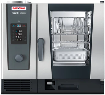 Пароконвектомат Rational iCombi Classic 6-1/1 E объединяет в себе работу нескольких человек, без необходимости их присутствия на кухне. Пароконвектомат, который умеет жарить, готовить на гриле, выпекать, готовить во фритюре, тушить и готовить на пару. Который надежен в работе, прост в управлении и соответствует меняющимся требованиям профессиональной кухни.