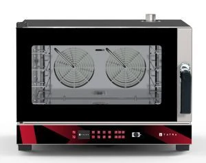Пароконвектомат Tatra TBI 04 DC.5V предназначен для для выпекания кондитерских и хлебобулочных изделий из свежего и замороженного теста с применением режимов сочетания конвекции и пара.