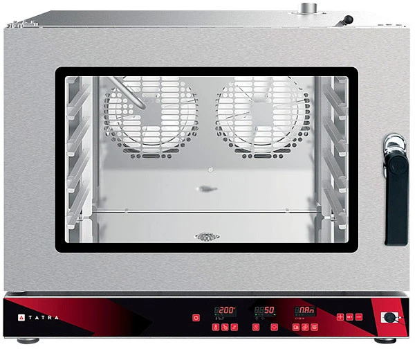 Пароконвектомат Tatra TC05D20L предназначен для использования на предприятиях общественного питания для приготовления различных блюд с применением режимов сочетания конвекции и пара. Фактически пароконвектомат может заменить собой несколько типов теплового оборудования, таких как конвекционная печь, жарочный шкаф, пароварка, плита и сковорода.