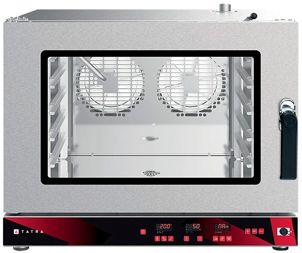 Пароконвектомат Tatra TC05D2CL предназначен для использования на предприятиях общественного питания для приготовления различных блюд с применением режимов сочетания конвекции и пара. Фактически пароконвектомат может заменить собой несколько типов теплового оборудования, таких как конвекционная печь, жарочный шкаф, пароварка, плита и сковорода.