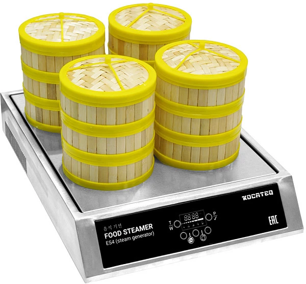 Пароварка для дим-самов Kocateq ES4WR с круглыми деревянными корзинами используется на предприятиях общественного питания и торговли. Блюда, приготовленные на пару, являются традиционной составляющей меню ресторанов восточной кухни.