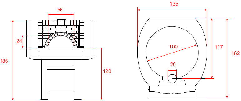 Это классические печи для пиццы. Дрова сгорают в самой камере выпечки, и пиццы приобретают специфический аромат дров. Прямое излучение пламени придает хороший цвет выпеченной пиццы. Камера выпечки имеет форму купола, что способствует равномерному выпеканию и более экономному сгоранию дров. Она выполнена из рефракторного материала с очень высоким процентом диоксида алюминия, что придает ей исключительную прочность и износостойкость. Камера выпечки состоит из крупных монолитных сегментов, поэтому нет необходимости периодически ее смазывать, как при кирпичных печах. Практически, эта камера вечна, и не требует никакого ухода. Камеры с большой толщиной (70-80мм) и большим весом (800-1200кг), что позволяет добиться большого эффекта накопления тепла, а это гарантирует термальную стабильность наших печей – даже при очень интенсивной работе, они не теряют своего температурного режима и обеспечивают высокую производительность.