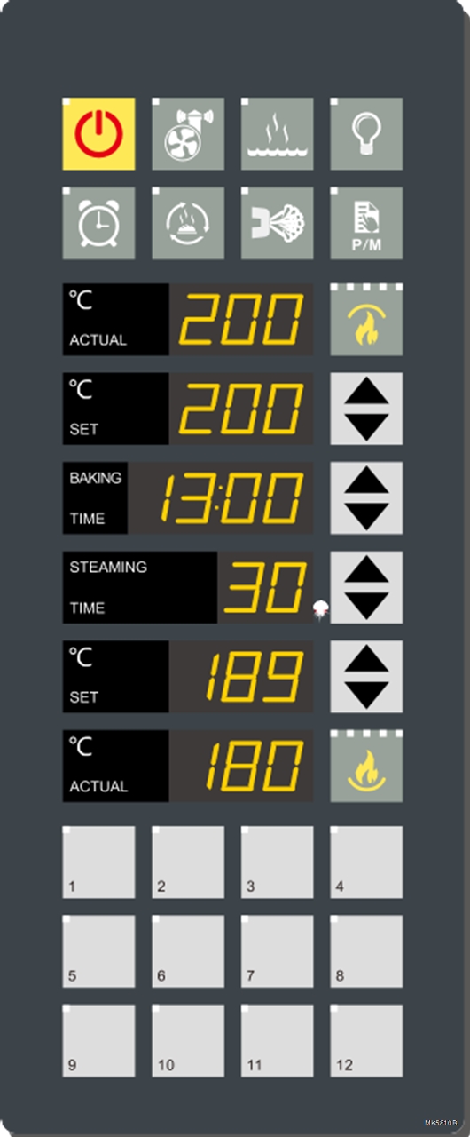 Программируемая цифровая панель управления (опция) – позволяет повысить удобство эксплуатации печи и обеспечить одинаковое качество продукта при работе одним или несколькими пекарями. Оператор может создавать 1-12 программ выпекания (которые запоминаются панелью управления) под определенные продукты. При новом цикле выпекания или новом продукте пекарь просто запускает нужную программу. Это и исключает необходимость перенастройки всех параметров печи при новом цикле выпечки (что свойственно электромеханическим панелям управления).