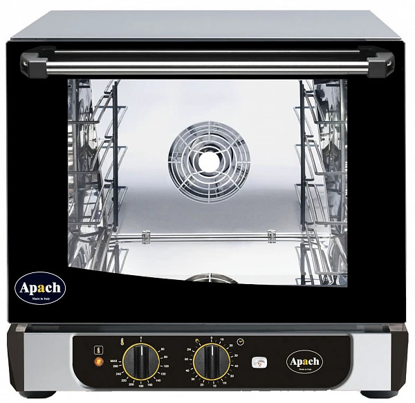 Печь конвекционная электрическая Apach AD44MH Eco предназначена для выпекания или разогрева кондитерских и хлебобулочных изделий, готовых блюд, замороженных или предварительно выдержанных в расстоечном шкафу заготовок из теста на предприятиях пищевой промышленности, общественного питания и торговли.