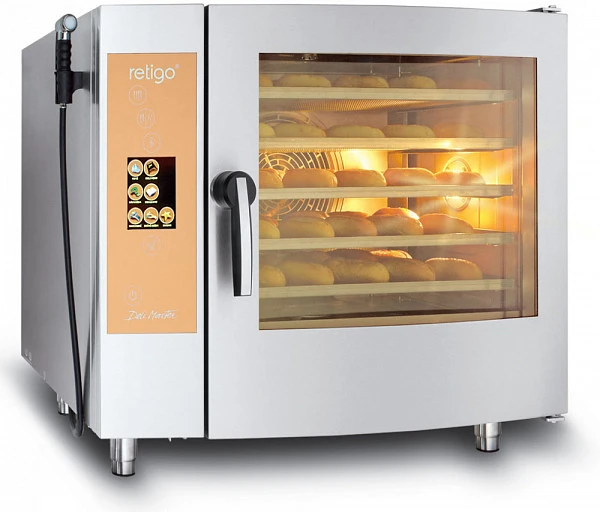 Retigo DM5 предназначен для выпечки хрустящего сладкого и соленого печенья, багетов, булок для бутербродов и гамбургеров и прочих хлебобулочных изделий, прожарки мяса всех сортов на фабриках-кухнях, предприятиях общественного питания и торговли.