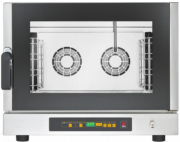 Мощный разнонаправленный вентилятор обеспечивает равномерный обдув и гарантируют равномерное пропекание всех изделий на каждом противне.