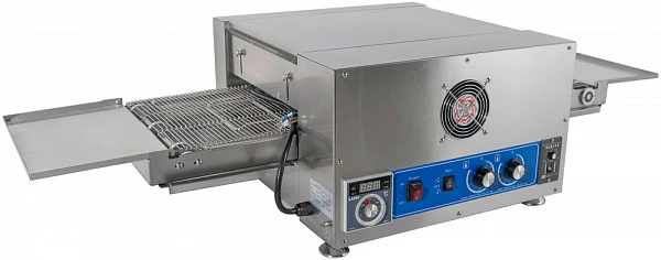 Печь оснащена электромеханической панелью управления, независимыми регуляторами нагрева верхней и нижней поверхности, регулятором скорости движения конвейерной ленты. Максимальная температура печей - 400C. Время выпечки одной пиццы составляет около 3-4 минут.