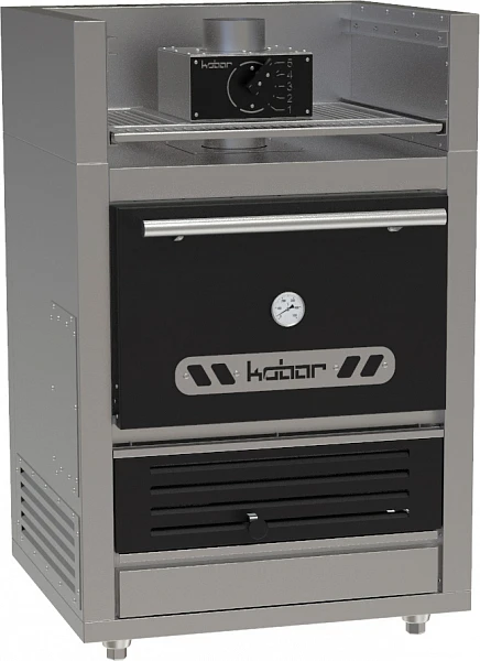 Печь на твердом топливе (хоспер) Кобор FIRE-25-M BC на древесном угле представляет собой усовершенствованный мангал, который обеспечивает прожарку и запекание мяса в закрытой камере с минимальным воздействием дыма и сохранением тепла. Оборудование изготавливается из нержавеющей стали и керамики для удобства поддержания чистоты.