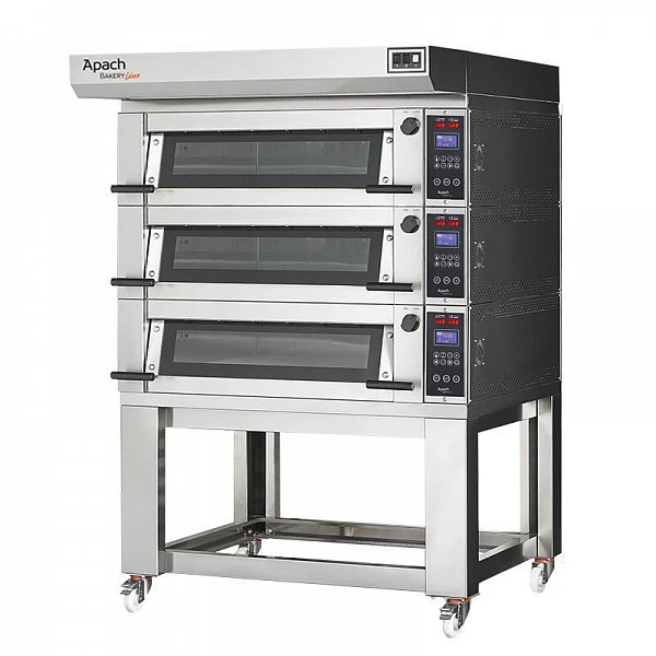 Печь хлебопекарная Apach Bakery Line E2PSK6L EMP серии E без пароувлаженения с подставкой без направляющих компактное решение с увеличенной производительностью. При оснащении встроенными погрузчиками (отдельная опция) эти печи позволяют добиться производительности уровня больших подовых печей.