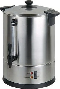 Основание оснащено защитным кольцом, позволяющим передвигать кипятильник по поверхности прилавка не оставляя царапин. Цельный корпус выполнен из матовой нержавеющей стали 201 толщиной 0,4 мм, внутренняя отделка (толщиной 0,4 мм) и фиксируемая крышка - из нержавеющей стали 304, кран для розлива, ручки крышки и корпуса - из пластика для предотвращения нагрева.