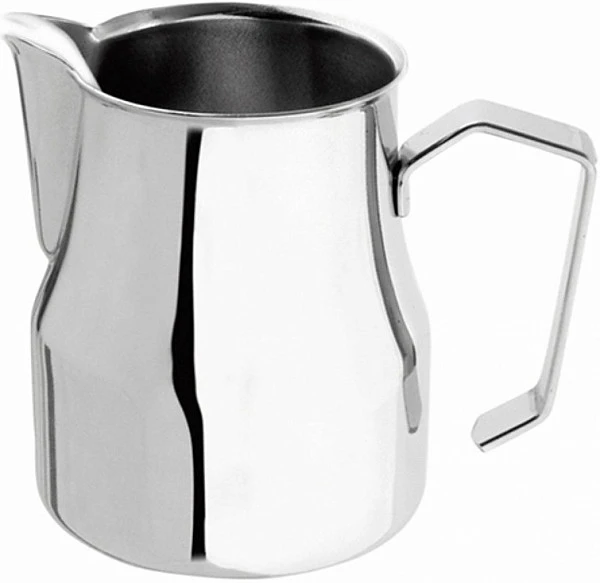 Изготовлен из высококачественной нержавеющей стали, что в свою очередь хорошо влияет на теплопроводимость и качество молочной пены.