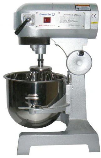 Планетарный миксер FoodAtlas Eco B-20B используется на предприятиях общественного питания и торговли замеса жидкого теста, кремов, начинок и прочих жидкостей.