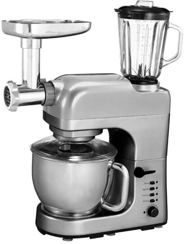 Миксер имеет 4 режима работы: замес, взбивание, блендер, мясорубка