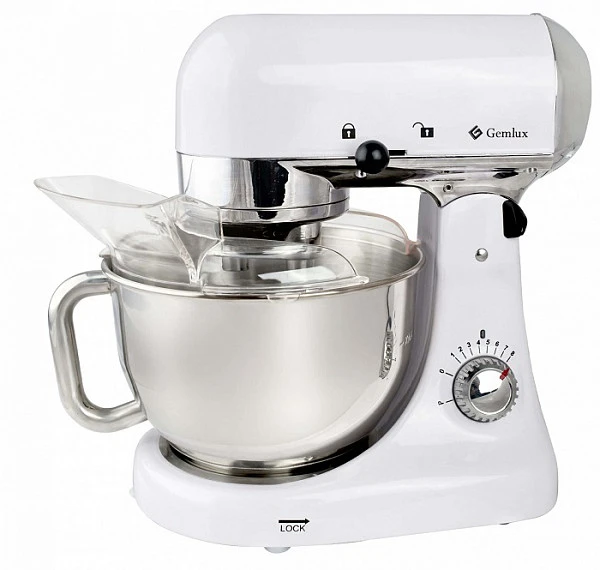 Настольный планетарный миксер Gemlux GL-SM5 предназначен для замеса дрожжевого и бездрожжевого теста различной вязкости, взбивания яиц, сливок, кремов и муссов, приготовления пюре, фарша и т.п.