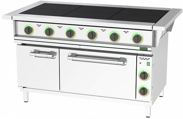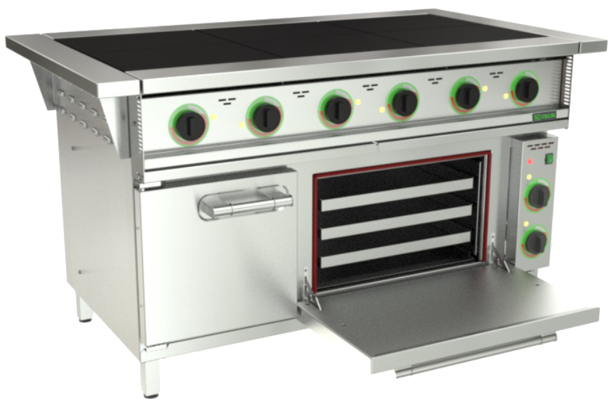 Плита электрическая Stillag ЭП6ШЦ напольная серии SG Optima с 6 квадратными чугунными конфорками 295*417 мм и с жарочным шкафом и нейтральным стендом.