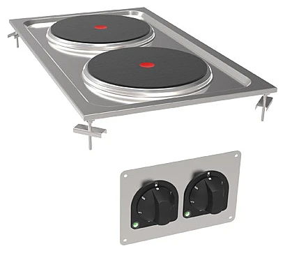 Нагрев зон приготовления происходит с помощью инфракрасных нагревательных элементов расположенных под стеклокерамической поверхностью, которая может выдерживать тяжелые кастрюли.