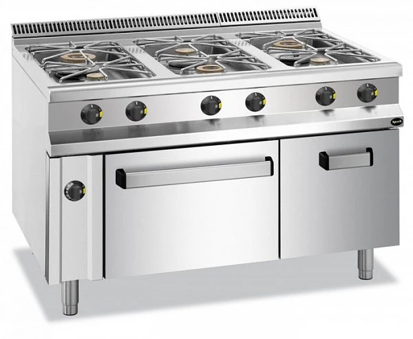 Плита газовая Apach APRG-129FMG 6-ти конфорочная 900 серии предназначена для приготовления первых, вторых, третьих блюд в наплитной посуде на предприятиях общественного питания и торговли.