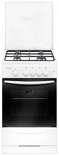Духовой шкаф газовой плиты отличается хорошей вместительностью и мощностью. Благодаря наличию подсветки можно контролировать приготовление блюда, не открывая дверцу. Духовка поддерживает систему газ-контроль, которая в случае погасания пламени сразу же прекращает подачу газа. Выполненная в белом цвете, данная модель станет украшением любой кухни.
