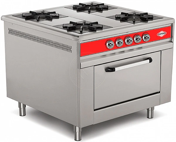 Плита газовая Empero EMP.9KG.021 с духовкой с 4 конфорками и с 4 горелками предназначена для приготовления первых, вторых и третьих блюд в наплитной посуде на кухнях ресторанов, кафе, столовых и точек общественного питания.