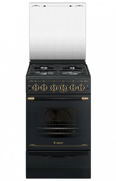 Плита газовая Gefest ПГ 5100-02 0183 компактная, стильная, функциональная. Ее черный корпус из эмалированной стали и фурнитура золотистого цвета выполнены в ретро-дизайне.