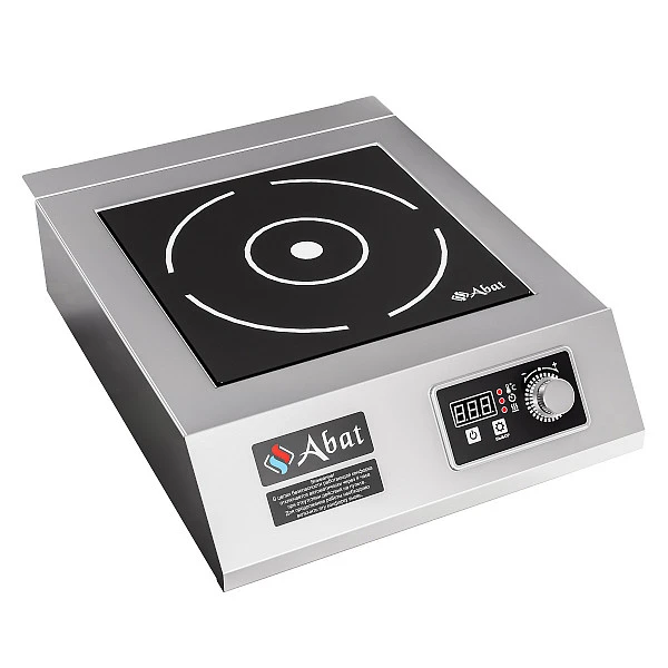 Плита индукционная Abat КИП-1Н-5,0 предназначена для приготовления первых, вторых и третьих блюд в наплитной посуде.