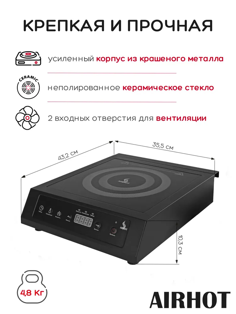 Компактная, но мощная плита AIRHOT IP3500 с двумя встроенными вентиляторами будет надежным помощником на кухне.