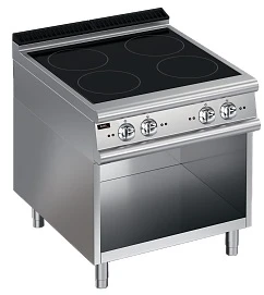 Плита оснащена открытой подставкой, что позволяет использовать ее как дополнительный элемент для хранения.