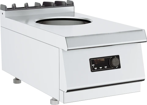 Плита электрическая настольная, индукционная с 1 конфоркой для ВОКа, электронным управлением, датчиком наличия посуды, изготовлена из нержавеющей стали.