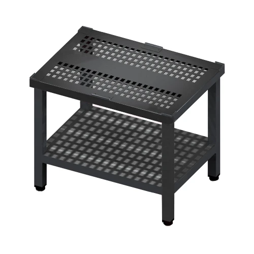 Перфорированная столешница оборудована ограничителями для опор оборудования.