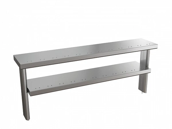 Полка 2-х ярусная Kayman Presto П-2. 1500-02 предназначена для кратковременного хранения и раздачи первых и вторых блюд, горячих и холодных закусок, напитков, кондитерских изделий и обеспечения клиентов столовыми приборами.