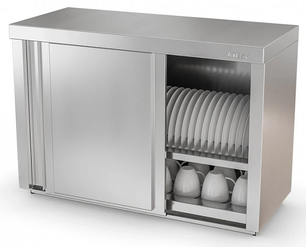 Полка закрытая для тарелок Atesy ПЗТ-С-1200.420.670-02-К (ПЗТ-1200) предназначена для хранения и сушки в естественных условиях стандартных суповых и десертных тарелок различных диаметров и стаканов.
