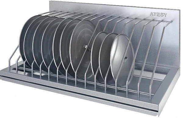 Полка Atesy ПКК-С- 600.350-15-02 (ПКК-600) серии Стандарт предназначена для сушки и хранения крышек кастрюль и баков в моечных отделениях, горячих цехах. Использование данной полки позволяет рационально использовать свободное место для хранения кухонного инвентаря.