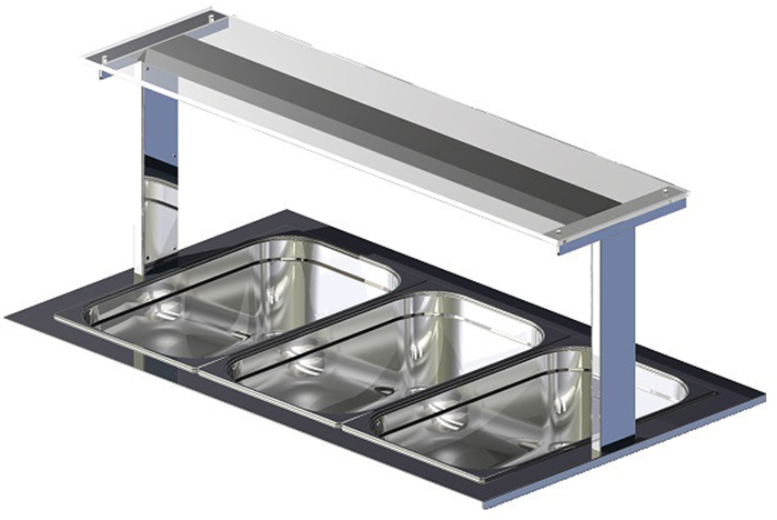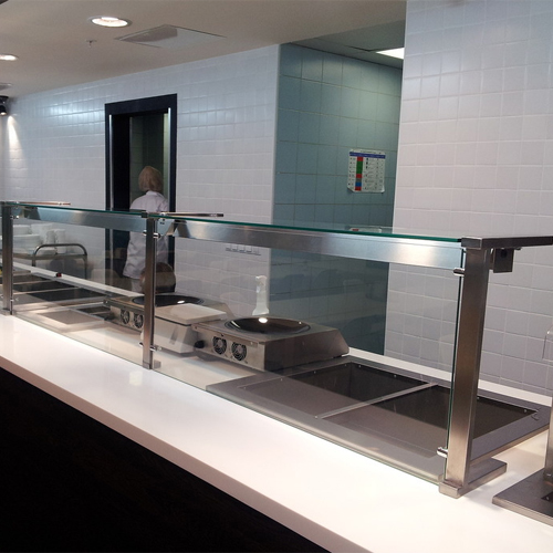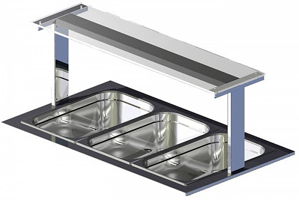 Полка настольная Gastrolux изготовлена из нержавеющей стали и стекла (толщиной 10 мм).