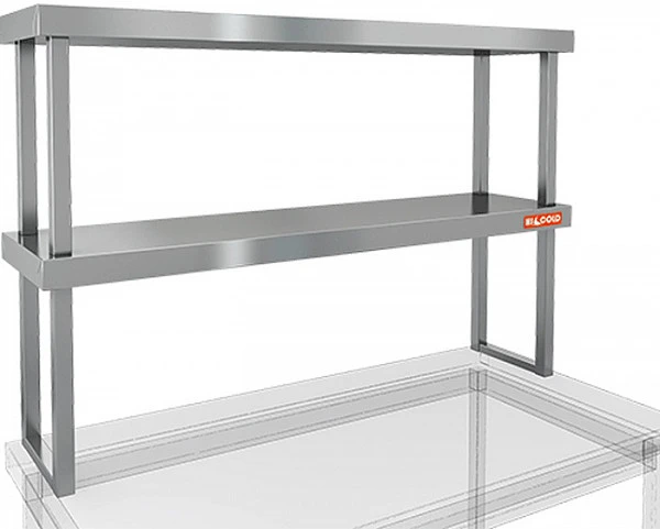 Полка нержавеющая настольная двойная Hicold НПСТ2-12/4 устанавливается на стол.