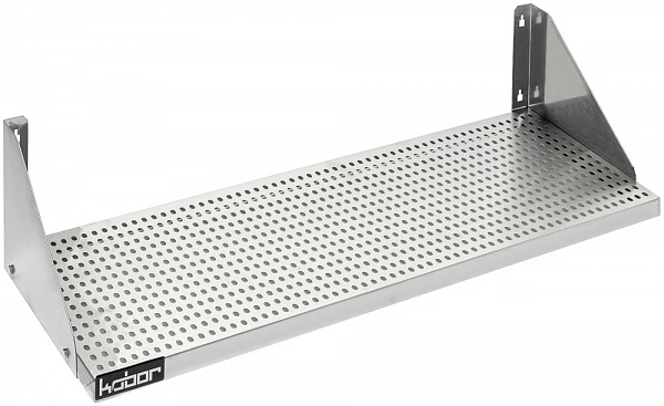 Полка настенная перфорированная Кобор ПР-120/30 предназначена для хранения и временной расстановки посуды и кухонного инвентаря на предприятиях общественного питания, магазинах, заготовительных предприятиях.