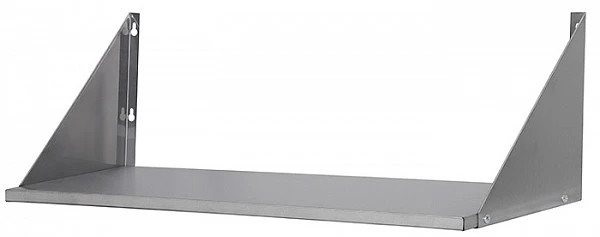 Полка настенная Luxstahl ПНК 10/4 сплошная из нержавеющей стали AISI 430 используется для хранения непортящихся продуктов и полуфабрикатов, а также кухонной посуды: сковородок, тарелок, кружек и прочего на предприятиях общественного питания.