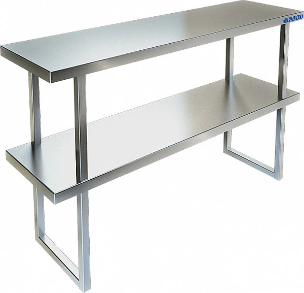 Для столов со столешницей ЛДСП разборная из нержавеющей стали марки AISI 430 толщиной 0,8мм, с усилителем, 2 яруса. Боковины (стойки) из трубы 20х20 нержавеющей стали марки AISI 430 толщиной 1,2мм. Крепление к столу болтовое через отверстие в столешнице. Полка поставляется в разобранном виде.